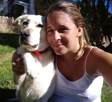 Es una labradora café con leche mestiza adoptada que he traído desde Argentina