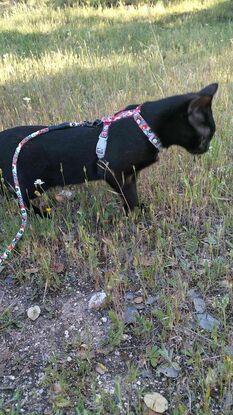 Cuando salimos de paseo, no le asusta que nos acerquemos a otros perros o que los toquemos, el va tranquilo en su bandolera mirando las cosas de la calle. Tampoco le importa que la gente le acaricie. Es un gato muy especial, le recogimos de la calle lleno de heridas y famélico, creo que su carácter es así de especial porque es muy feliz en esta familia y sabe que le vamos a proteger siempre, nos lo llevemos a donde nos lo llevemos.