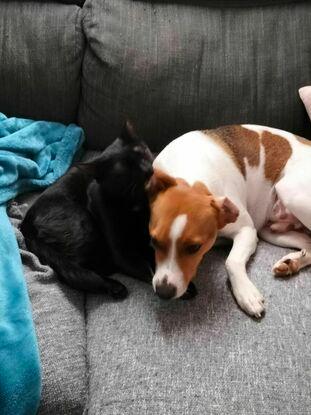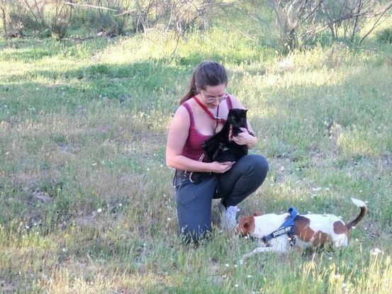 Franky es un GATO. Es inseparable de su hermano perruno, se pasan el día jugando y lamiéndose. Franky es muy sociable, siempre nos lo llevamos a la calle de paseo en una bandolera, pues no le gusta nada quedarse solo y no soporta que Mawi se vaya y el quede. Cuando sucede, monta escándalos maullando en la puerta hasta que vuelve Mawi. Es muy dependiente.