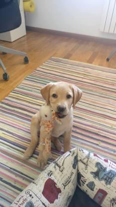 Una perrita encantadora, educada, y muy cariñosa, no ha extrañado nada, pese a q era la primera vez q salía de su casa.
