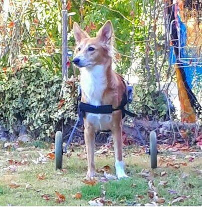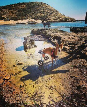 Queenie es una perra muy especial. Luchadora. Cariñosa. Tiene dos patitas. Lleva siempre pañal. En casa camina con sus dos patitas, para los paseos tiene un carrito. Le encanta la compañía y que le den mucho cariño. No se lleva bien con algunos perros, recomiendo no juntarle por si acaso. Con niños es muy cariñosa.