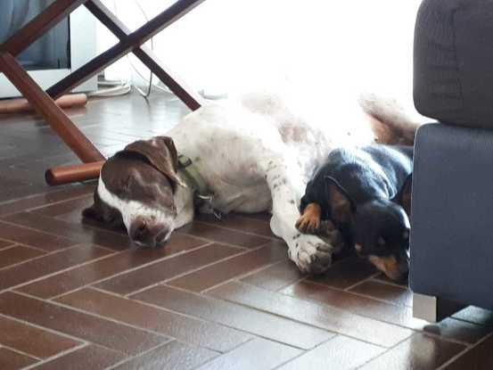 Sí, perfectamente, porque además va con la otra perra. Pero es epiléptico y toma medicación 4 veces al día, por tanto hay que estar en casa a las 8, 14, 19 y 22h (con hora y media de margen por arriba o por abajo)